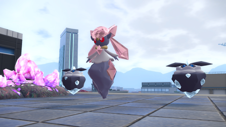 Il veut désormais aller sur les toits. Suivez-le jusqu'à un toit rempli de Méga-Fragments. Deux Strassie apparaissent, suivis peu après par Diancie !