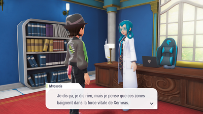 Une fois Xerneas capturé, Myosotis arrive pour vous féliciter. Au tour du légendaire suivant.