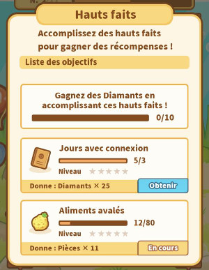 | Gagnez des Diamants en accomplissant ces hauts faits ! | ||