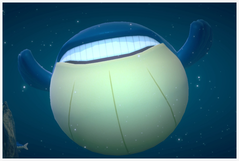 Wailord | Wailord apparaît à la fin du parcours lors de la dernière phase quand les Froussardine nagent en banc, si vous avez illuminé les Froussardine suffisamment tard (lorsqu'ils nagent à droite). Lorsque les Froussardine partiront pour se transformer en forme Banc, Wailord apparaîtra et les chassera... puis la tendance s'inversera quand Froussardine gagnera sa forme Banc ! |