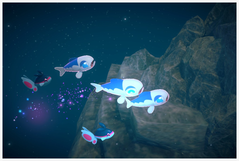 Froussardine Solitaire | Il s'agit du Pokémon luminescent, mais sous forme "séparée". Au début de chaque phase du parcours, vous devez lancer des orbes sur ces Froussardine qui nagent en banc pour qu'ils se rassemblent ! Les Foussardine "isolés", notamment ceux du début avec Wailmer ne semblent pas être utiles pour déclencher les phases suivantes. Lors de la troisième phase, vous trouverez tous les Froussardine en train de nager en banc. |