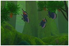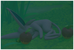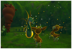 Draïeul | Des Draïeul volent un peu partout dans la forêt. En particulier, vous trouverez un Draïeul transportant Bulbizarre et Pandespiègle dans la clairière ensoleillée si vous avez visité la zone d'été et que vous avez lancé un orbe sur le Draïeul. Dans ce cas-là, à la fin de la clairière, vous pouvez lancer une pomme sur le Draïeul pour l'énerver ! Sinon, en temps normal, il mangera juste vos pommes lancées. Dans la zone de fin, si vous utilisez le radar sur le Draïeul sur votre gauche dès l'entrée, vous le retrouverez à la fin en train de dormir, avec 2 Chelours qui l'observent ! |