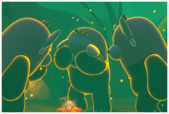 Chelours | Deux Chelours dorment dans une caverne de la zone hivernale. Lancez-leur des pommes pour les réveiller puis jouez la mélodie pour les faire marcher : ils vous diront au revoir ! Autrement, 3 Chelours au début de la dernière zone peuvent manger vos pommes : mais si vous énervez celui sur votre droite en lui lançant des pommes dessus à plusieurs reprises, il agitera les bras pour appeler tous les Chelours du coin et ils commenceront à vous pourchasser, vous poussant vers le téléporteur plus rapidement ! Sinon, vous pouvez attirer 3 Chelours vers la Fleur de Crysta pour qu'ils aillent la contempler : activez la Fleur permet de les éblouir ! |
