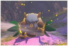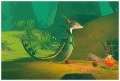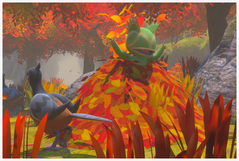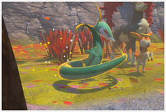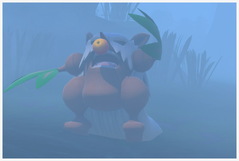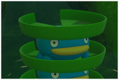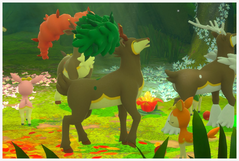 Majaspic | Dans la deuxième zone en automne, un Majaspic se situe derrière la colline à droite et l'autre derrière la rivière à gauche : ce dernier peut être attiré vers Vivaldaim en jouant de la mélodie, Majaspic utilisera son attaque Phytomixeur si vous lui lancez un orbe dessus. Il se trouve aussi dans la dernière zone, près de la fin où il est caché par le décor et les ruines antiques : lancez un orbe pour qu'il sorte... vous pouvez alors le nourrir ou jouer de la mélodie pour l'endormir (sinon activez alors la Fleur de Crysta pour l'éblouir). Enfin, si vous aviez été dans la zone d'automne, il apparaît dans la clairière ensoleillée, une première fois derrière la colline sur la gauche, et une seconde fois vers la fin du parcours où vous pouvez attirer un Vivaldaim avec des pommes pour le faire se retourner, puis lancer un orbe sur Majaspic pour qu'il prenne la pose et fasse danser les Vivaldaim ! |