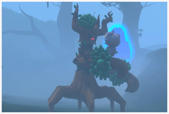 Desséliande | Des Desséliande se trouvent un peu partout dans la forêt : certains mangeront vos pommes et d'autres seront énervés si vous leur lancez des pommes dessus ! De plus, un Desséliande particulier se trouve dans la première zone, à l'endroit où est posé Mentali : si vous jouez de la mélodie, il s'apaisera et ouvrira le passage. Dans ce même endroit, si vous utilisez le radar, un Psystigri se posera au sol puis lancez un orbe sur lui pour que Desséliande le remarque et le prenne sur son bras ! |