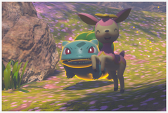 Bulbizarre | Bulbizarre se trouve dans la zone de printemps, sur la gauche. Vous pouvez le faire se déplacer vers Vivaldaim et Haydaim en lui lançant un orbe dessus. Il pourra alors vous souhaitez l'aurevoir si vous jouez de la mélodie. Dans la zone d'été, il parle avec un Draïeul et un Pandespiègle sur la droite. Vous en trouverez un autre dans la dernière zone, près du lac final, qui peut être attiré vers Nénupiot si vous lancez un orbe sur Bulbizarre, puis sur Nénupiot ! Vous pouvez aussi le retrouver dans la clairière ensoleillée, chevauchant un Draïeul si vous avez lancé un orbe sur ce dernier dans la zone d'été ! À la fin, il restera sur le dos de Draïeul si vous utilisez le radar plusieurs fois ! |