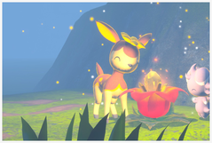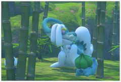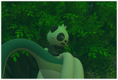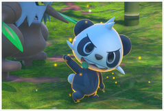 Pandespiègle | Des Pandespiègle sont trouvables dans la zone d'été. En particulier, il y en a un qui se fait entraîner par Tengalice : lancez-lui un orbe dessus pour qu'il exécute des coups de poings ! Un autre sera attiré pour jouer dans la rivière si vous activez plusieurs fois la Fleur de Crysta : si vous lancez en plus un orbe sur le premier, les 2 Pandespiègle ainsi que 2 Vivaldaim vont jouer ensemble ! Un autre joue avec Draïeul et Bulbizarre de l'autre côté de la rivière : jouez la mélodie pour l'attirer ! En ayant visité la zone d'été, Pandespiègle apparaît à nouveau dans la clairière ensoleillée, et il se trouve même sur la tête d'un Draïeul volant si vous avez lancé un orbe sur le Draïeul de la zone d'été ! |