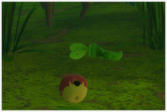 Verpom | Dans la zone d'automne, un Verpom se tient devant un arbre sur la gauche : Vivaldaim viendra naturellement vers lui et il se fera effrayer ! Un autre Verpom se cache parfois dans le tas de feuilles mortes à gauche : lancez des pommes dedans pour le faire sortir. Dans la zone de fin classique, il y a plusieurs groupes de Verpom : celui sous les débris peut être réveillé avec la mélodie puis il dévalera alors la pente si vous lui lancez une pomme. Dans la clairière ensoleillée (uniquement si vous avez visité la zone d'automne), 2 Verpom seront accrochés à des arbres vers la clairière : si vous leur lancez des pommes dessus, ils tomberont et vous verrez la véritable forme de la pomme ! |