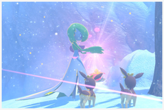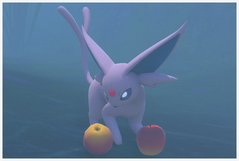 Gardevoir | 2 Gardevoir se trouvent dans la zone hivernale. L'un joue avec les Vivaldaim (sur la droite) puis se téléporte jusqu'à 3 fois si vous le touchez avec un orbe, il utilisera ses pouvoirs pour faire fleurir un arbre en fin de zone ! L'autre (sur la gauche) mangera vos pommes en utilisant ses pouvoirs psychiques. Celui de la clairière ensoleillée n'apparaît que si vous avez visité la zone d'hiver : il se situe alors sur votre gauche et mangera aussi vos pommes. |