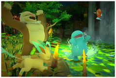 La nuit, de nombreux Pokémon sont de sortie dans cette jungle luxuriante, comme s'ils étaient attirés par sa végétation lumineuse.