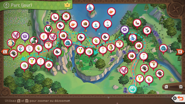 Pichu | Pichu se trouve à différents endroits : dans la plaine de départ où il se met à danser si vous jouez de la mélodie ; dans la zone de la mer où il court sur le chemin et peut réagir aux pommes ; dans le champ de fleurs où il joue à cache-cache avec Ouistempo et Flambino : si Pichu est trouvé (en lançant une pomme ou un orbe sur lui), il prendra une pose unique ! |