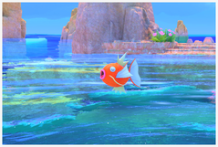 Sharpedo | Vous trouverez deux Sharpedo vers le début du parcours : le plus éloigné peut manger des pommes en faisant un grand saut ! Si vous avez activé la Fleur de Crysta près d'eux, ils nageront frénétiquement ensemble en sautant hors de l'eau de manière régulière. Un autre Sharpedo poursuivra un Carapuce près du tourbillon mais se fera arrêter par Lokhlass. Enfin, un dernier Sharpedo fait la course avec Mackogneur jusqu'à un rocher avant l'intersection : à la fin, il sautera hors de l'eau, comme pour montrer sa puissance. |
