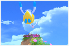 Concombaffe | Un Concombaffe peut se trouver sur la plateforme du chemin alternatif, de manière aléatoire. Il mangera les pommes que vous leur lancez et vous saluera si vous leur lancez un orbe dessus. Enfin, des Concombaffe se cachent dans la bouche des Bekipan dans la zone finale et sont recrachés si vous lancez des pommes sur eux ! À l'intérieur de leur bouche, Ils prendront la pose si vous lancez un orbe sur Bekipan ! De plus, ils peuvent être (re)pêchés par les Bekipan n'ayant pas ou plus Concombaffe dans leur bouche, si vous leur lancez un orbe dessus ! |