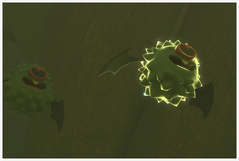 Bruyverne | Des Bruyverne se trouvent vers la fin de la troisième salle, un peu après les ruines antiques. Celui qui est posé agitera ses ailes si vous lui lancez un orbe dessus, et s'envolera prématurément si vous lui lancez une pomme dessus. Il s'agitera et s'envolera aussi si vous avez fait venir Lugulabre en lui lançant des pommes dessus. |