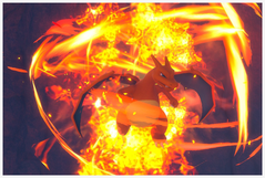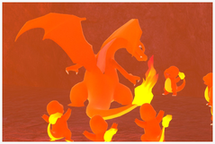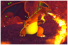 Dracaufeu | Dracaufeu se trouve en fin de parcours en train de se battre contre Rexillius. Il peut être appelé par les Salamèche si vous activez la Fleur de Crysta, attirez au moins 5 Salamèche en lançant des pommes puis jouez de la mélodie pour faire danser les Salamèche... puis il pourra prendre la pose si vous rejouez de la mélodie ! Attention, si vous lancez des pommes quand Dracaufeu est proche, il volera à l'intérieur de la crevasse et pourra en sortir si vous continuez de lancer des pommes ! Un autre peut apparaître dans la zone avant la grotte de lave bleue : vous trouverez 2 Salamèche sur qui vous devez lancer un orbe, attendez alors qu'ils se mettent en position puis faites tomber le Gravalanch accroché en hauteur avec une pomme : Dracaufeu surgit alors du sol et s'envole vers les ruines ! Là-bas, il volera un petit moment avant de descendre pour un duel d'intimidation avec les Typhlosion : il peut cracher des flammes si vous lancez un orbe sur lui un peu après son atterrissage. Sinon, vous pouvez faire fuir Dracaufeu en lui lançant une pomme dessus, ou faire fuir les Typhlosion en leur lançant des pommes, auquel cas Dracaufeu descendra et pourra prendre la pose si vous jouez de la mélodie ou pourra manger des pommes ! |