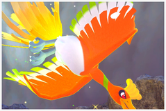 Ho-Oh | Disponible uniquement après les crédits. Ho-Oh apparaît aléatoirement dans le ciel, soit sur votre droite où se trouve Salamèche au début du niveau soit dans la seconde zone. Il peut aussi apparaître au-dessus du cratère avant la grotte de lave bleue. Si vous l'avez photographié en extérieur, vous trouverez les Arcenci'Ailes dispersés au niveau de la grotte de lave bleue, à activer avec des orbes : une première se trouve sur votre gauche juste avant la partie de lave bleue, la seconde sous le Chartor (réveillez-le avec un orbe) et la troisième autour du pilier près de la Fleur de Crysta. Si au moins 2 ailes sont activées, Ho-Oh apparaît dans la dernière salle. Avec 2 ailes activées, lancez-lui un orbe dessus pour qu'il réalise une acrobatie. Avec 3 ailes activées, il commence par rayonner de toutes les couleurs puis parcourt la salle, et se met à hurler si vous lui lancez un orbe dessus ! |