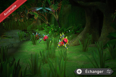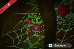 Vers le début du parcours, sur votre gauche, vous verrez une grosse toile d'araignée... Avant d'y arriver, jouez de la mélodie et 2 Croquine se poseront dessus... Réveillez ensuite le Migalos en lui lançant 3 pommes dessus pour qu'il effraie et dégage les 2 Croquine. Vous devez photographier les 2 Croquine surpris !