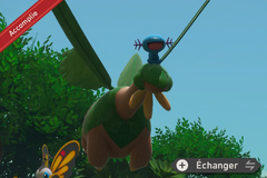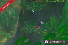 Au niveau des ruines et du nid des Bazoucan, activez la Fleur de Crysta en bas. Cela fera apparaître des Coxyclaque dont un au sol à qui vous devez lancer des pommes pour qu'il la mange.