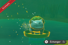 Dans la zone finale, vous trouverez un petit lac avec Nénupiot flottant dessus et Bulbizarre à proximité. Lancez un orbe suffisamment tôt sur Bulbizarre pour l'attirer vers le lac, puis un orbe sur Nénupiot. Les 2 Pokémon se mettent alors d'accord pour que Bulbizarre monte sur Nénupiot.