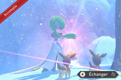 Dans la zone d'hiver, un Gardevoir joue avec les Vivaldaim sur votre droite. Lancez un orbe sur lui pour que Gardevoir se téléporte sur un arbre, puis encore un orbe pour qu'il se téléporte devant Feunard... et un autre orbe pour qu'il se téléporteur devant un arbre à gauche. Lancez une dernière fois un orbe sur Gardevoir et il créera des cristaux de neige avec ses pouvoirs.