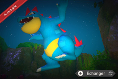 Vers le début, lancez une pomme sur le Aligatueur situé sur la falaise. Il partira plus loin et sautera dans l'eau. Le lieu du plongeon est un peu avant la descente.