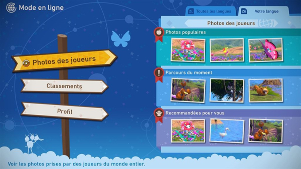 Si vous êtes abonné au Nintendo Switch Online, vous pouvez partager vos plus belles photos en ligne ! Si vous voyez de belles photos, vous pouvez encourager les photographes en leur donnant des Médailles Pomme. Vous pouvez également y voir les classements des joueurs dans différentes catégories. Le Professeur peut également vous remettre des Médailles Pomme s'il juge que vos clichés sont uniques !Phénomène Lumina