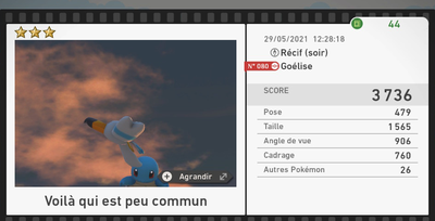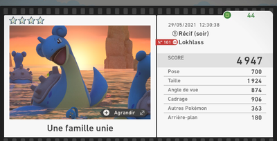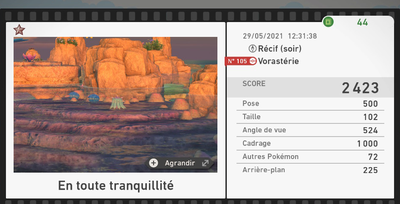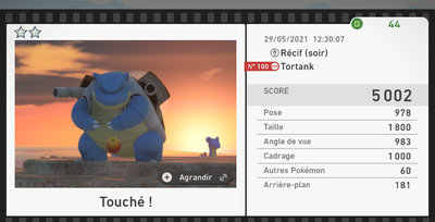 Les scores sont bien entendus variables selon votre propre performance et vous ne pouvez pas tout le temps obtenir les photos parfaites de tous les Pokémon sur une seule expédition. Vos photos ne seront pas forcément dans la tranche indiquée plus haut, cette dernière étant un indicateur du potentiel score qu'il est possible d'avoir.