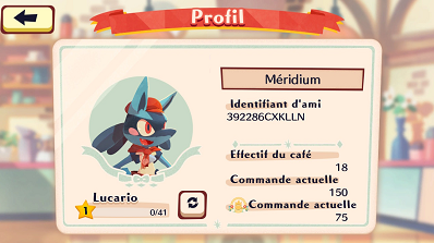 Bien que les interactions avec soient assez restreintes (voir peu utiles), vous pouvez tout de même ajouter des amis en saisissant l'identifiant que vous pouvez retrouver dans votre profil, via le menu (vous voyez ainsi son avancée dans les commandes classiques et dans le mode Super Café). Cela vous permet aussi de compléter un défi des Cartes à défis.