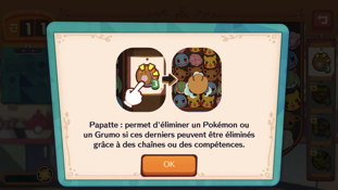![]() | Papatte | ![]() | Permet d'éliminer un Pokémon ou un Grumo si ces derniers peuvent être éliminés grâce à des chaînes ou des compétences. |