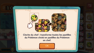 ![]() | Cloche du chef | ![]() | Transforme toutes les pastilles du Pokémon choisi en pastilles du Pokémon en chef. |