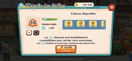 Note : Si vous n'avez pas les étoiles nécessaires, vous pouvez toujours payer avec des glands dorés pour gravir les différents niveaux.
