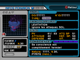 Chaque Pokémon Obscur a une jauge dans son menu Résumé qui modélise l'état de sa conscience. Lorsqu'un Pokémon vient d'être snatché, cette jauge est pleine, traduisant une conscience totalement verrouillée.