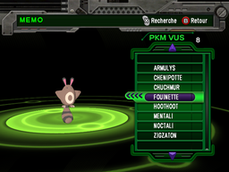 Appelée MÉMO, cette fonction est grosso modo un Pokédex, vous permettant d'avoir des infos sur les Pokémon rencontrés.