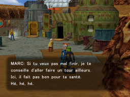 Retournez donc toucher quelques mots à Marc, à l'entrée de la ville. Il ne s'embarrasse alors pas de question et vous affronte directement.