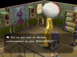 En sortant, vous serez interpellé au niveau de la passerelle par un sbire de Bouledisco, qui vous conduit dans l'un des bâtiments de la ville.