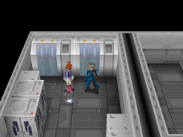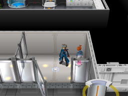 Descendez via l'ascenseur tubulaire. Une vaste zone du complexe s'ouvre à vous. Attendez-vous à vous faire régulièrement intercepter par des dresseurs qui apparaissent sournoisement en sautant du plafond !