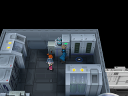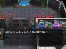 Le reste de la pièce est inaccessible pour l'instant, faute d'avoir la Clé Magnétique. Sortez et entrez dans la partie que vous venez d'ouvrir. Un PC s'y trouve.