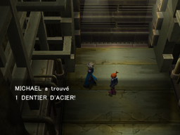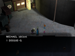 Un objet est visible sur le sol : il s'agit d'un Dentier d'Acier. C'est le vieux monsieur qui se trouve devant l'herboristerie qui l'a fait tomber. Pour vous remercier de le lui avoir ramené, il vous remettra le Disque-G.