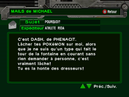 Toujours en changeant de lieu, Nett vous informera également qu'il a décodé le dernier Pokémon du disque, il s'agit d'un Togetic. Adi vous enverra également un mail par la suite.