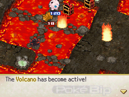 Enfin, le volcan risque de se réveiller à tout moment, projetant des rochers sur vos Pokémon qui leur infligent des dégâts.