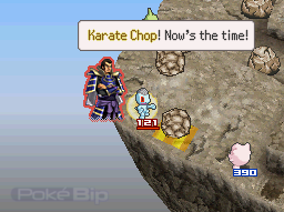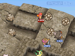 Une fois vos Pokémon dégagés, prenez garde aux roches sphériques : si vous ou votre adversaire attaquez l'un d'entre-eux, il déboulera le long de la pente, écrasant tout sur son passage et infligeant des dégâts aux Pokémon situés sur son chemin.