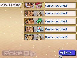 Ne pas recevoir de dégâts de la part du Pokémon du guerrier à recruter.