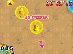 Voici les images du jeu présentées par Nintendo Japon. Chaque "écran de jeu" est fait de deux images : l'image du haut est celle de l'écran secondaire qui sert de radar, celle du bas est l'écran tactile sur lequel se joue la course.