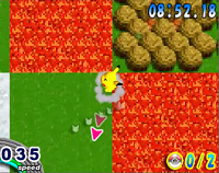 | Lave | ![]() | Réduit la vitesse, même un peu après être sorti du terrain. Brûle et s'élève dans les airs au contact de la lave. Vitesse max : 35 Pikachu meurt s'il retombe dans la lave après 3 sec sur ce terrain |