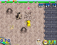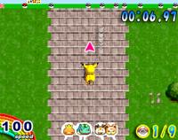 | Glace | ![]() | Réduit la vitesse. Vitesse max : 82 Pikachu glisse sur ce terrain : changer de direction devient plus difficile |