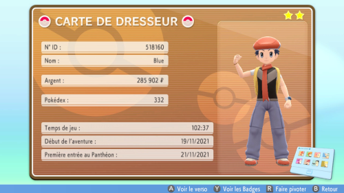 Sur le recto de la Carte de Dresseur, vous pouvez voir des informations variées sur vous et votre aventure.