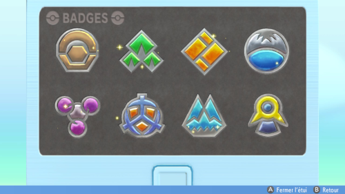 À partir de votre Carte de Dresseur, vous pouvez aussi ouvrir votre étui de badges en appuyant sur Y.
