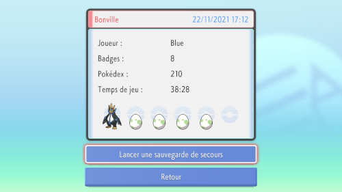 Attention : comme indiqué sur l'image, si vous sauvegardez sur votre partie chargée avec votre sauvegarde de secours, elle effacera votre sauvegarde principale, et donc votre progression entre ces deux sauvegardes !