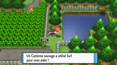 Envolez-vous vers Féli-Cité. Retournez sur la Route 204 et approchez-vous des étendues d'eau accessibles pour faire appel à Castorno et ainsi monter sur son dos pour qu'il vous fasse voguer sur les flots de Sinnoh... on appellera ça le Surf-Castor !
