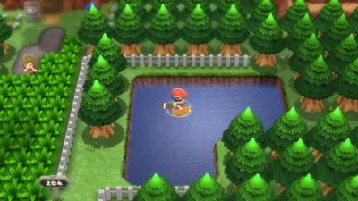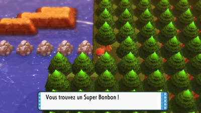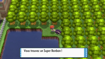Envolez-vous vers Voilaroc, puis dirigez-vous vers la Route 214 puis allez récupérer un Super Bonbon en traversant l'étang.